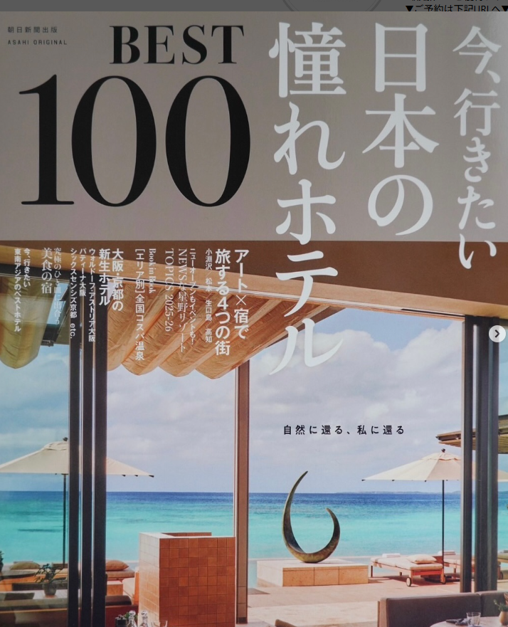 このたび、朝日新聞出版様発行『今、行きたい!憧れホテルBEST100』に、